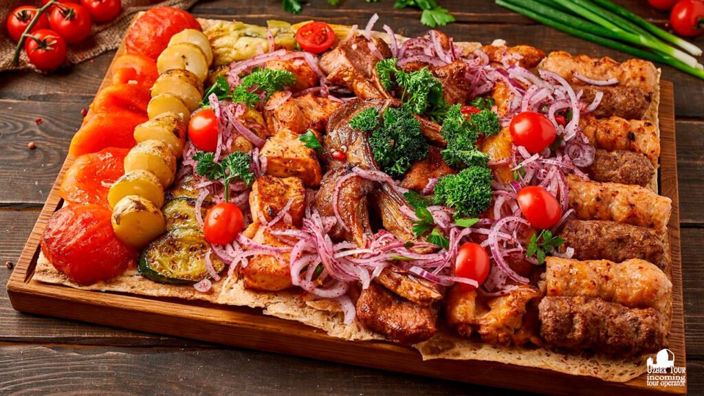 In Uzbekistan, lo shashlik (kebab o shish kebab- da “Sish” – sei) è un piatto cult a base di agnello, manzo, pollo, fegato (zhigar) e persino quaglia (bedona). Tra le varianti più diffuse ci sono lo shashlik a pezzi grossi, lo shashlik macinato (kiyma) e lo shashlik con dumba (la coda grassa di agnello), spesso servito con cipolle sottaceto. Se ti piace kebab di carne macinata devi assagiare il famoso shashlik di Gijduvan.